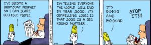 Nemyslím si, že by skončila. Jenom už není tak intenzivní. Není to prokazatelné, ale domnívám se, že příchod roku 2000 rozrušil mnoho lidí, přestože mileniální hnutí se ne vždy váží na konkrétní datum. Pamatuji si, že jsem v devadesátých letech četla komiks Dilbert (oblíbená komiksová postava ztělesňující „kafkovitost“ korporátních firem – pozn. aut.), někdo v něm říkal: „Proč je rok 2000 tak děsivý?” A Dilbert odpověděl: „Protože je to velké kulaté číslo.” Takže asi tak, díky všem možným mýtům, které okolo přicházejícího roku panovaly, bylo mnoho lidí rozrušených, přineslo to mnoho mileniálních představ.