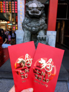 Nejvíce to však oslavami žilo samozřejmě v Chinatownu a to po celou dobu svátků. Kromě výzdoby jste si téměř v každém podniku mohli lehce všimnout oltáře s obětinami předkům a bohům, zajišťující štěstí a blahobyt pro následující rok. Lampióny utvořily nebesa otevřeným uličkám čínské čtvrti a při východu z jejích bran jste byli obdarováni červenou obálkou s penězi pro štěstí, byť jen čokoládovými, které taktéž tvoří součást čínské novoroční tradice.