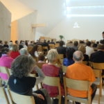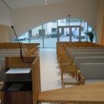 V pátek 24. 2. od 9 do 15 hodin měla možnost projít si vnitřní prostory modlitebny a Společenského centra veřejnost. Zájemci se mohli v 10, 12 a 14 hodin účastnit komentované prohlídky. Přednášku vedl jeden z architektů stavby Daniel Jeništa. Upozorňoval především na křtitelnici, ceremoniální vstup, prosklenou plochu nad pódiem a na boční „kaple“ (obr. 9), ve kterých mají probíhat sobotní školy a společné umývání nohou před Večeří Páně na konci každého čtvrtletí.