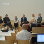 Úvodní slovo a vedení celé bohoslužby měl na starosti kazatel Pavel Smolka. Zpěv vedla Žaneta Teaotea (Kantorová) ze sboru Bethany v Praze. Písně se zpívaly ve stoje, modlilo se v pokleku. Sobotní škola proběhla netradiční formou. Trvala pouhých dvacet pět minut, kdy šestice dobrovolníků na pódiu debatovala o příběhu z 3. kapitoly biblické knihy Daniel (obr. 12). Publikum pouze poslouchalo. Sobotní školy obyčejně trvají přes hodinu a zapojit se do nich může kdokoli. Probírají se texty z čtvrtletníku Průvodce studiem Bible. Na každý den je vybráno několik veršů z Bible, nad kterými se má čtenář zamyslet, přečíst si k nim výklad a další sobotu o nich mluvit s ostatními ve sboru (jejich podoba je k nahlédnutí zde). Panelovou diskuzi vedla Petra Smolková a svým hostům kladla otázky a zajímala se o jejich názory. Debata se nesla v poměrně příjemném a místy humorném duchu. Mluvilo se například o nebezpečí vlastního egoismu, pokušeních moderní doby, ochotě Hospodina znovu a znovu odpouštět lidské prohřešky nebo o tom, že Kristus je s věřícím za všech okolností. V oznámeních se zmiňovali zkušenosti dobrovolníků, jež roznášeli letáčky s pozváním na blížící se přednášky Radima Passera Ježíš tvá naděje (psali jsme o nich zde a reflexi otiskli zde) po okolních vesnicích. Dále se sdíleli o zkušenostech z nepřetržitého týdenního modlitebního řetězu. Někteří členové si vzali na starost neuvěřitelných sedm hodin v kuse.