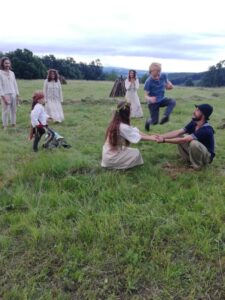 A: Mne sa páči v slovenskej komunite okolo Žiarislava, že je naozaj obrovská a veľmi dbá o korene. Žiarislav robí gazdovskú obrodu a učí ľudí, ako si pôvodným spôsobom vyrábať vlastné veci od potravín, syrov, oblečenia a krpcov, až po rôzne nástroje, hospodárenie a úle a veľmi sa mi páči tá praktickosť. A tie slávnosti sú naozaj nádherné! Dbá sa tam o to, aby na slnovrate boli 4 vatry, ktoré sa preskakujú, a je tam jeden koláč, z ktorého si 300 ľudí odždibne, a sú tam nádherné pesničky, v ktorých vidím silu. Ale nepáči sa mi, že v mnohých slovenských skupinách, aj v tejto veľkej, je stále veľa alkoholu a medovina tečie prúdom. Väčšina z nás sme vegetariáni, ale občas si dáme mäso, keď je ulovené, alebo z nejakého dobrého zdroja, kde je o zvieratá dobre postarané. Nie všetci to ale dodržiavajú a veľakrát sa na rituály prinesie jedlo, ktoré nie je z dobrého zdroja, a to sa mi nepáči. Preto sa mi páči, že v českej skupine, kde sme sa s Honzom dostali, nebýva na rituáloch a na obradnom stole alkohol ani mäso.