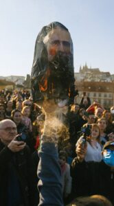 Samotnému zapálení Morany-války na Karlově mostě ještě předcházely dvě menší události, které stojí i z religionistického hlediska za komentář: Sametovému posvícení se rituálně zdařile povedlo polarizovat symboly dobra a zla, války a míru, zbavování se starého a vyhlížení naděje, když do celého průvodu zapojily děti, které kolem Morany průběžně tancovaly a posílaly ji pryč. Linka jaro-naděje-děti-Ukrajina vs. zima-smrt-válka byla velmi emočně nabitá a zároveň univerzálně srozumitelná i pro všechny přihlížející turisty a náhodné kolemjdoucí.