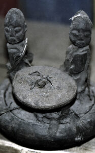 Důležitou součástí vodunské praxe jsou fetiše, do nichž se mohou nižší duchové – nikoli však samotní voduni – materializovat. Kromě fetišů – ochranných sošek nebo masek – zasvěcenci připravují ochranné amulety zvané kri-kri, což je malé kožené pouzdro zavěšované obvykle na krku, uvnitř něhož je začarovaný ochranný předmět nebo kouzlo zapsané na papíře, obvykle pokapané krví obětovaného kohouta. Kri-kri jsem nesčetněkrát zaznamenal nejen u vyznavačů náboženství vodun, bori, jorubského náboženství, ale ve značné míře i u západoafrických křesťanů a muslimů, dokonce i u Tuaregů na severu Mali.[18]