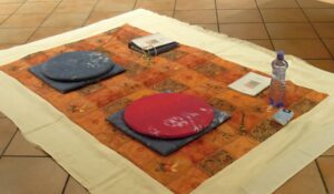 Účastníci se po 18. hodině pomalu scházejí v kapli a připravují setkání. Na stole v čele prostoru kaple se tak brzy ocitnou dva stojany – jeden s fotografií Satja Sáí Báby, druhý se symbolem, vyjadřujícím jednotu všech náboženství. Mezi stůl a židle jsou prostřeny dvě látky: jedna pro dvě zpěvačky, jedna pro hudebníka, který bude všechny bhadžany doprovázet na indické přenosné harmonium. Někteří z účastníků připraví pořadí zpívaných bhadžanů a napíší čísla, jimiž jsou označeny ve zpěvníku: dva papíry s čísly pak přilepí na hranu stolu tak, aby na ně všichni viděli. Vlevo jsou čísla sedmi písní v sanskrtu, vpravo šest čísel českých písní. U obrazu Saí Báby se ještě rozsvítí ozdobná světýlka. V jednom ze zpěvníků se píše (str. 76):