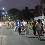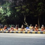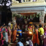 Z reprobeden podél silnic znělo „Oooooom namah Šivája“ celou noc stále dokola. Většinu skupin tvořily buď široké rodiny, přátelé nebo skupiny mužů oděné do oranžových, bílých a červených látkových přehozů. Nejdříve jsem se zastavil u malého chrámu s býkem Nandi, kde zrovna probíhal obřad. Nandi je ochránce a jízdní zvíře Šivy. O chvíli později jsem navštívil i malý chrám Thiru Ner Annamalai, kde se lidé modlili a přihazovali kousky petrolejových kostiček do velkého ohně před vchodem. Každou noc, kdy lidé obcházejí chrámy, ášramy a Šivovy lingamy, jsou bráhmani (kněží) velice bdělí a nabízejí poutníkům požehnání i pomazání popelem (vibhúti) a červenou kurkumou.