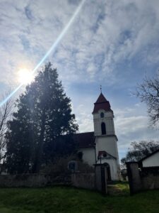A svoji osobní pouť jsem začala v Soběhrdech, kde jsem také (pár měsíců dozadu) zažila první mši (v dospělosti a ta, která nebyla za mrtvého), kterou vedl úžasný člověk a skvělý učitel Josef Bartošek. V Soběhrdech jsou dvě zajímavá místa – Kostel Farního sboru Českobratrské církve evangelické (1) a Římskokatolická kaple Nanebevzetí Panny Marie (2).
