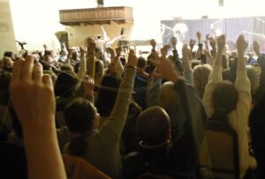 Na jejím začátku se Petr probouzí ze snu, mluví o poselství, které má předat lidem, a odjíždí s manželkou do Prahy. Karel Kříž v této části hraje sám sebe, jak s pracovní helmou na hlavě připravuje představení Světlé nitky nad námi. Pokud první část byla amatérsky přehranou dogmatikou hnutí Nového věku s vlasteneckými prvky, tato druhá část je dlouhým kázáním, plným obdivu vůči publiku („jste hrdinové, jste úžasní“) a mravních apelů na ně. V kázání zazní i Ježíšova slova (která ovšem nejsou v kanonických evangeliích), například: „Jestli chceš být jako já, pomůžu ti, jestli ne, počkám na tebe“, anebo „až přijde čas, oni to přijmou“. Kázání obsahuje i emotivní Křížovo „svědectví“, podmalované jemnou klavírní hudbou. I v této části se projeví záliba Karla Kříže v hledání skrytého významu slov a jeho typ vlastenectví najde odezvu mezi diváky; když na scéně „objeví“ a roztáhne českou vlajku, ozve se z publika spontánní potlesk.
