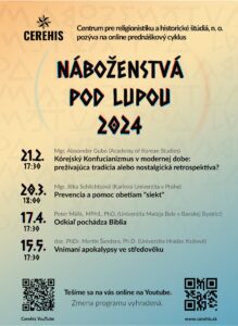Centrum pre religionistiku a historické štúdiá, n. o. (CEREHIS) je nezisková organizácia z Košíc, ktorá pravidelne realizuje obľúbené cykly prednášok na témy spojené s religionistikou a históriou. Od februára 2024 prinesie svojim priaznivcom už šiesty ročník prednáškového cyklu s názvom „Náboženstvá pod lupou“. Aj tento rok prinesie zaujímavú mozaiku tém a to obľúbenou online formou. Veríme, že si medzi nimi nájdete svoju obľúbenú.