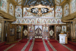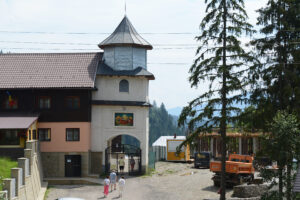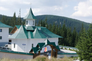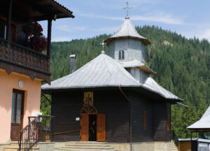 Znovuobnovený mužský klášter Zesnutí Bohorodičky (po roce 1994) v lesích v severorumunském pohoří Rarau z 16. století.
