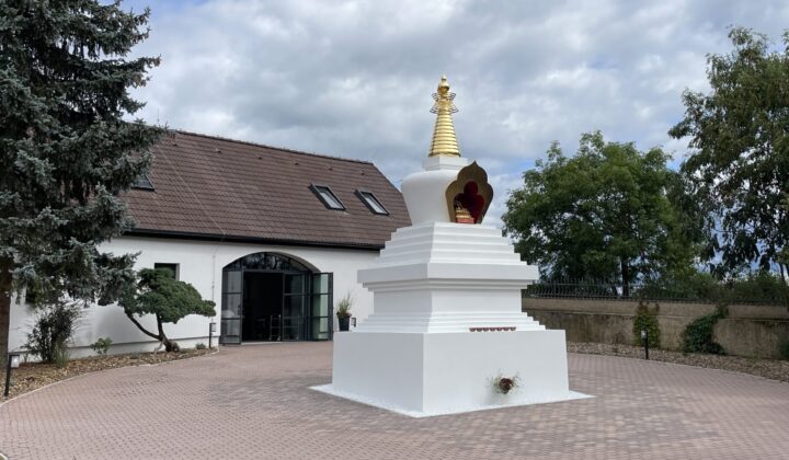 Přípravu k zasvěcení dvou stúp, o níž jsme před časem referovali, dovedlo společenství tibetských buddhistů Nala ke zdárnému konci. Ve středu 11. září byla slavnostně zasvěcena (či inaugurována) stúpa Vítězství v areálu retreatového centra Karma Kungha Padkar Ling v Újezdě nad Zbečnem. Inaugurace druhé stúpy se bude konat dnes, v pondělí 16. září v Tuchoměřicích u Prahy. Jak mi sdělila Vlasta Hodanová, jedna z představitelek společenství Nala, nezvyklé termíny – středa a pondělí – byly vybrány na základě buddhistické astrologie jako doba, která je pro takové slavnosti příznivá. Podle brožurky, která byla účastníkům zasvěcení k dispozici, slouží stúpy …