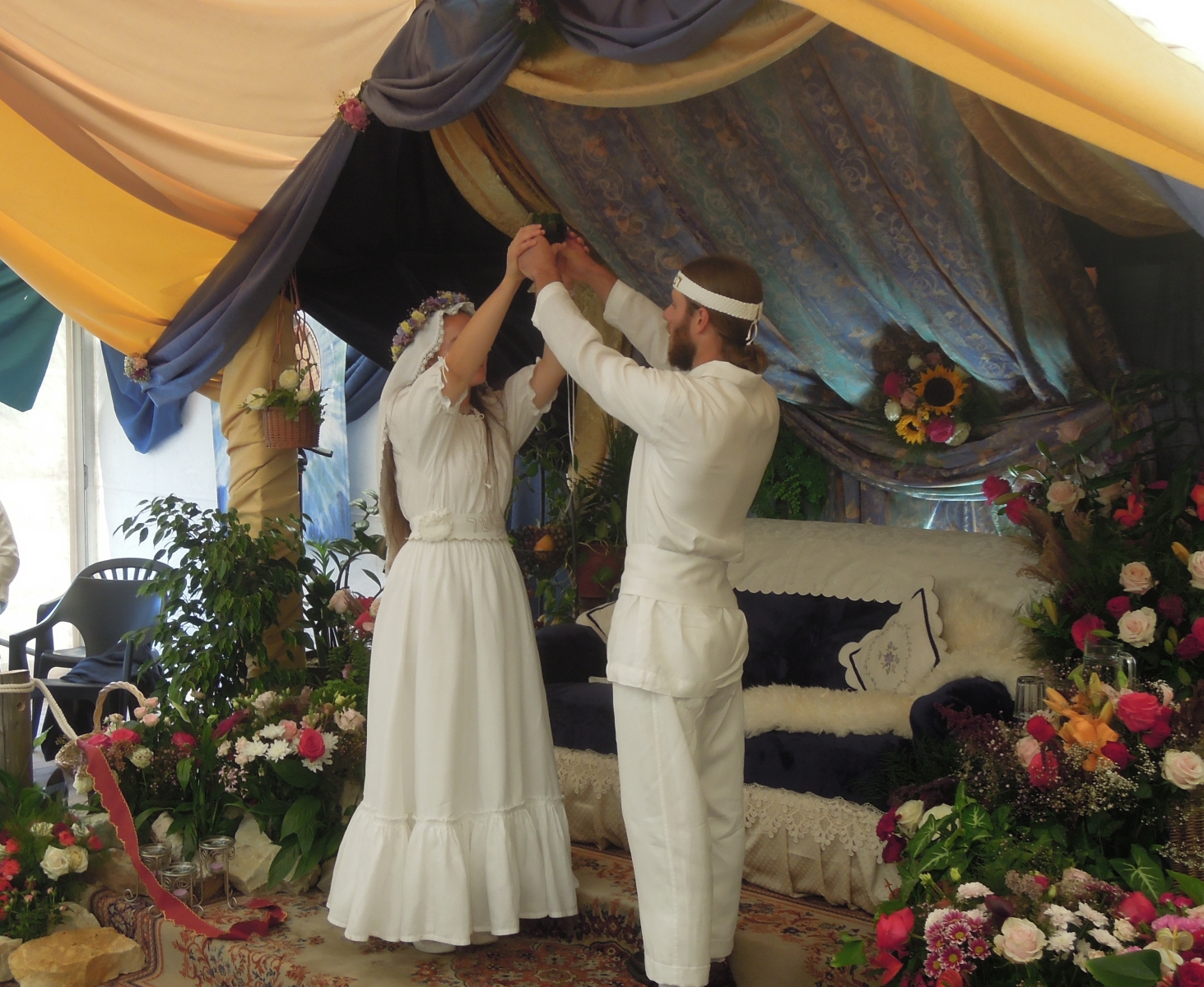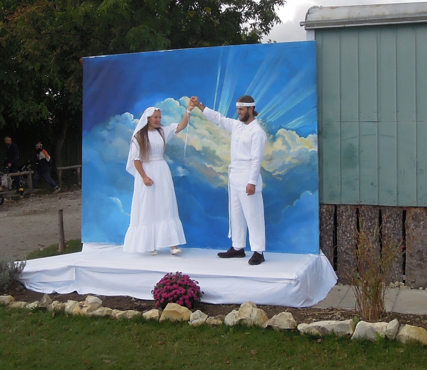 Právě tento výklad se uplatňuje při svatebních oslavách, které jsou pojaty jako představení současnosti a budoucnosti. V představeních je zhodnocena skutečnost, že v knize Zjevení je vzkříšený a nanebevztatý Ježíš chápán též jako Ženich, který si na konci věků přichází pro čistou Nevěstu, tedy svou církev, složenou z těch, kteří obstáli v pokušeních, zkouškách a pronásledováních posledního času. Každá svatební slavnost je jiná (ta sobotní byla druhá, jíž jsem byl svědkem); motivy Ženicha a Nevěsty a zpracování událostí před Ježíšovým (Jašuovým) druhým příchodem jsou ovšem těmto slavnostem společné. V následující reportáži popisuji slavnost tak, jak jsem je jako účastník v roli pozorovatele zachytil ve svých poznámkách. Své pozorování jsem pro přehlednost rozdělil do 24 bodů.
