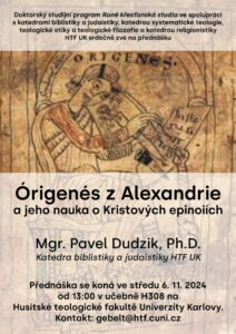 Doktorský studijní program Raně křesťanská studia ve spolupráci s katedrami biblistiky a judaistiky, katedrou systematické teologie a katedrou religionistiky Husitské teologické fakulty Univerzity Karlovy srdečně zve na přednášku dr. Pavla Dudzika.