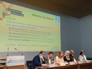 Panel anglických přednášek uzavřel rabín a historik náboženství Reuven Firestone z Los Angeles. Celkově šlo podle mého názoru o velmi podnětné setkání. Ukázalo se totiž, jak se vzájemně prolínají a ovlivňují interpretace náboženských textů v různých tradicích. Dopoledne tedy přineslo nové pohledy na dialog mezi těmito vírami. Znovu to pro mě otevřelo otázky o budoucnosti akademických diskusí ve Stuttgartu. Vrátí se zpátky k původnímu dialogu křesťanství a islámu, nebo se z něho stane nově trialog s judaismem?