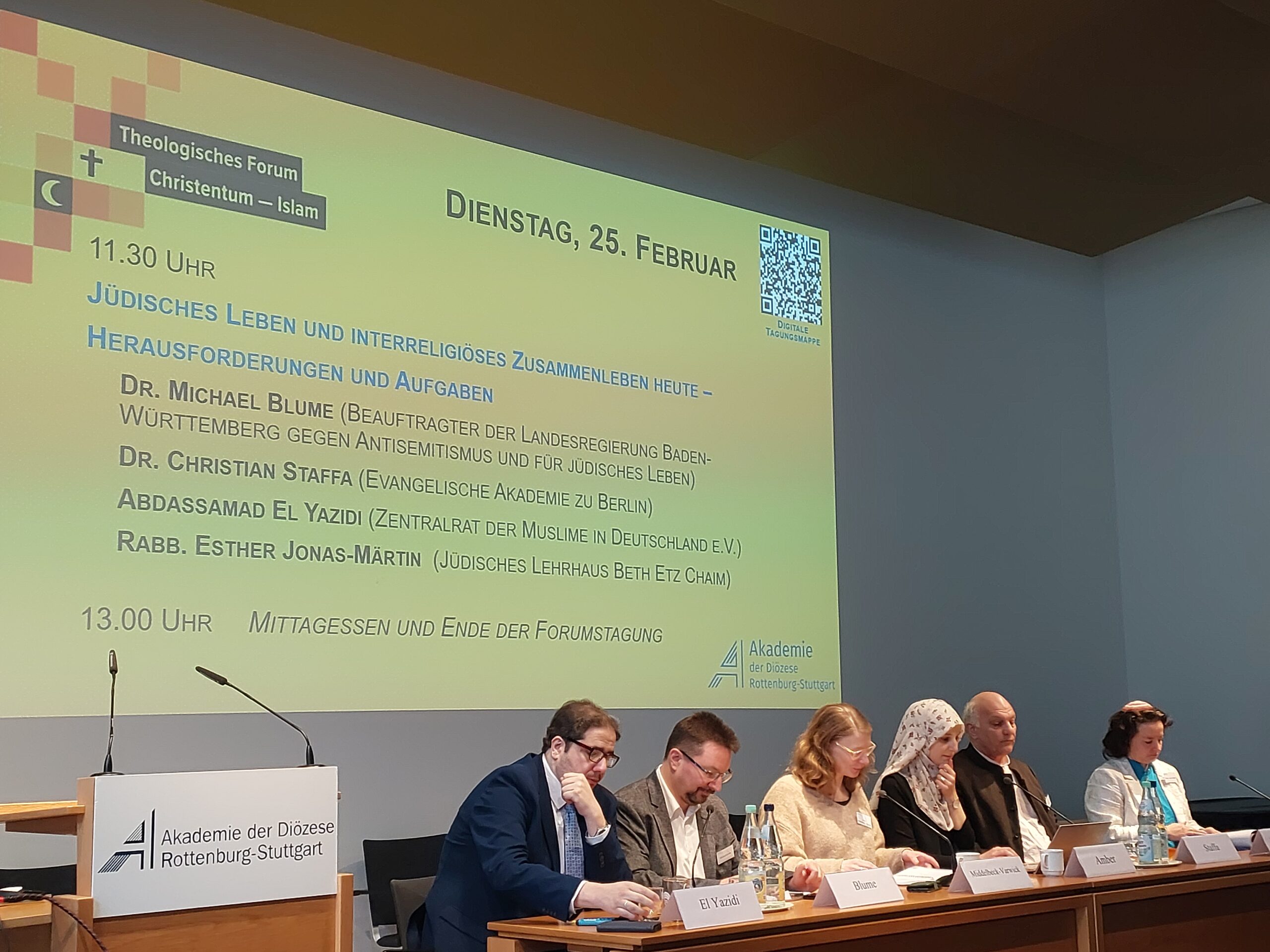 Islámský úhel pohledu nabídl teolog Amir Dziri, který se kriticky zaměřil na současné diskuse o korektním vztahu mezi muslimy a nemuslimy na základě udržitelného konceptu „záruky ochrany“. Nakonec vystoupil rabín Edward van Voolen a hovořil o jednom z klíčových momentů žalmu 149. Zmiňuje se v něm „dvojsečný meč“, kterým se musí věřící bránit proti svým nepřátelům. Od tohoto se odrazil při svém zamyšlení, jakým rozdílným způsobem křesťané, muslimové a židé popisovali své vzájemné vztahy. Nebylo to ale jen o minulosti, hovořilo se o náročné vnitropolitické i zahraniční současnosti. Po celou dobu konference se diskutující zaměřovali především na dvě klíčové geografické oblasti. Na jednu stranu volili příklady přímo z Německa, na druhou stranu se neustále navraceli k situaci v Izraeli a Gaze.