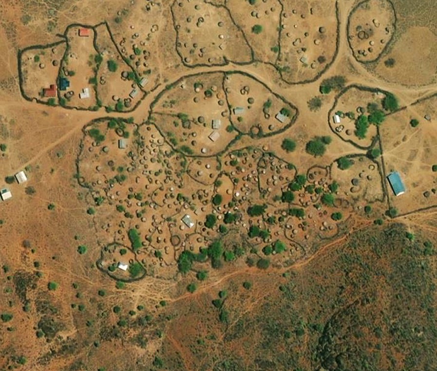 Satelitní snímek vesnice v Trojúhelníku Ilemi (zdroj: Mapy.cz).
