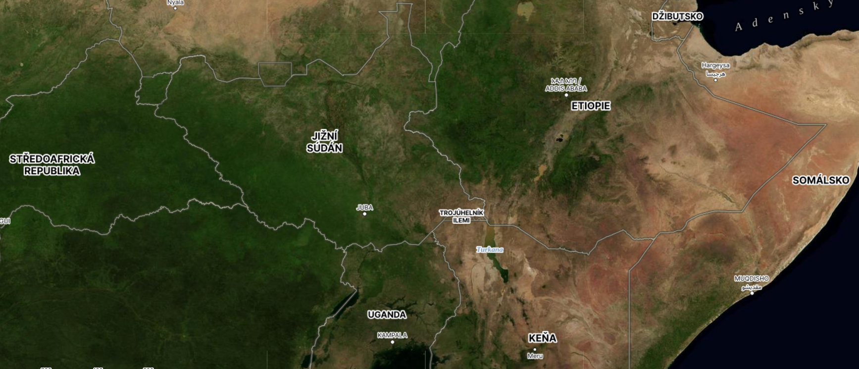 Satelitní snímek oblasti Trojúhelníku Ilemi s okolními zeměmi (zdroj: Mapy.cz).