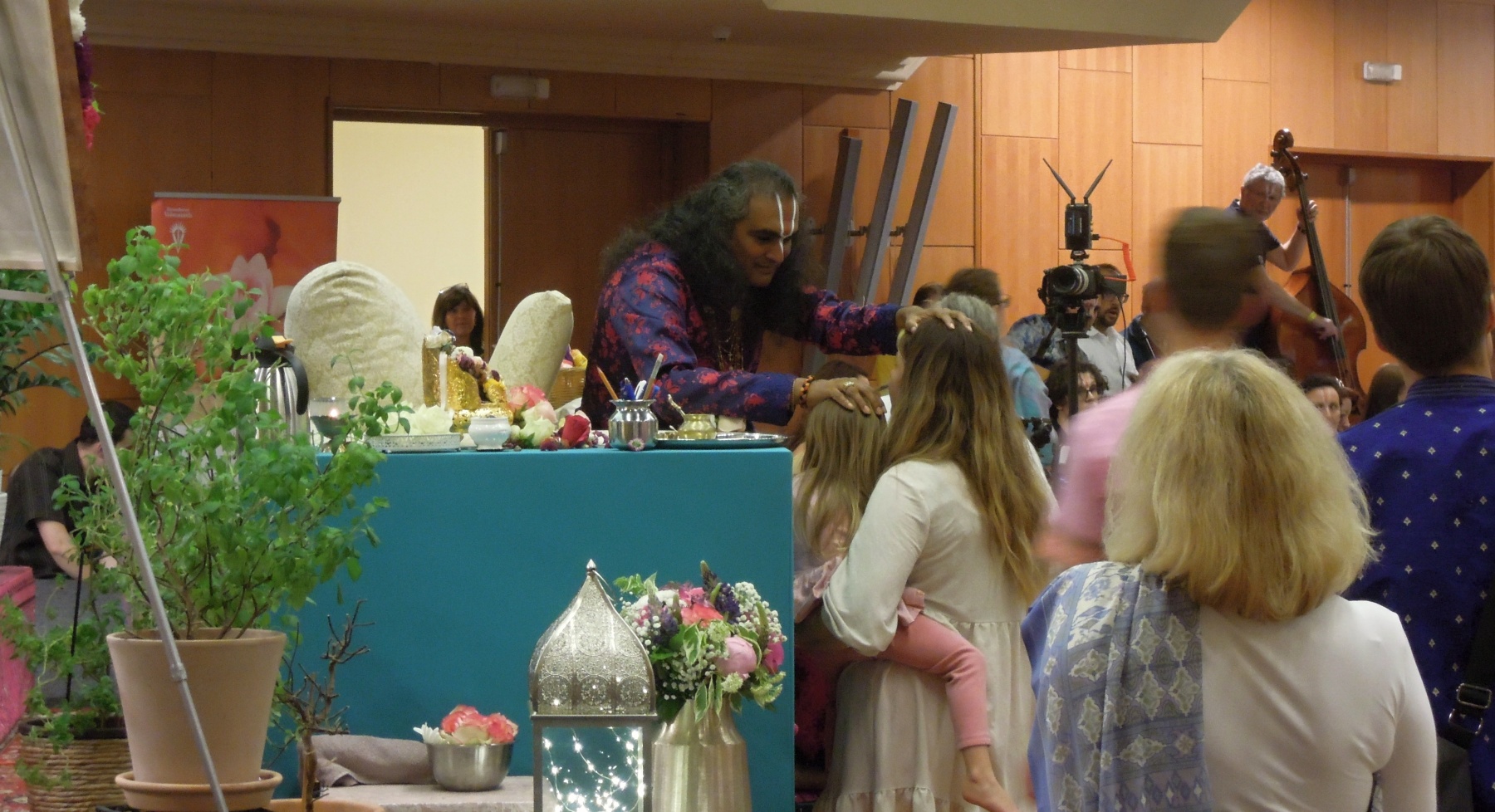 O návštěvě učitele indických tradic bhakti (oddané lásky k božstvu) a krijá jógy[1] (jógy činů) svámího Višvánandy[2] v Česku jsme psali před několika dny: v pátek 30. května se zúčastnil obřadů v nově budovaném chrámu Vitthala Rukminí[3] nedaleko Kamenice nad Lipou. Při druhém, a tentokrát už zcela veřejném setkání v sobotu 31. května v Praze uděloval daršan svým oddaným ve společenství Bhakti Márga[4] a mnoha dalším příznivcům.