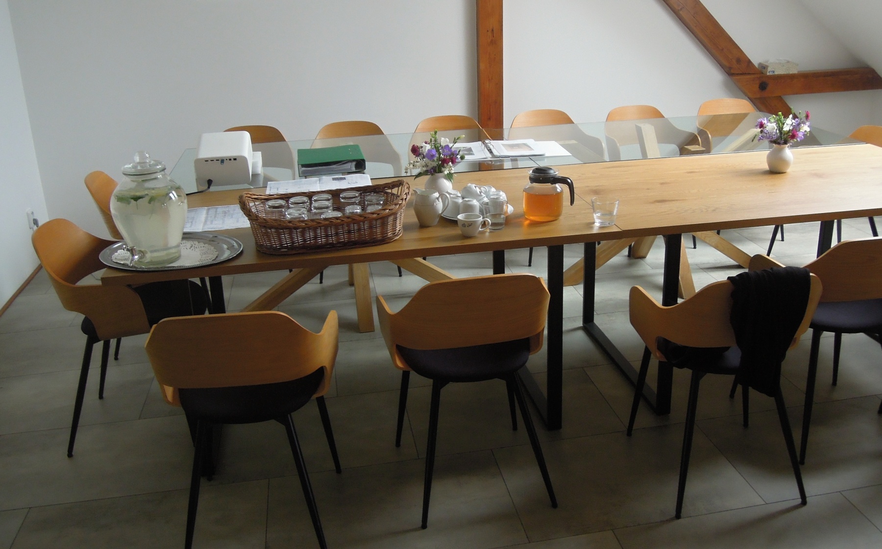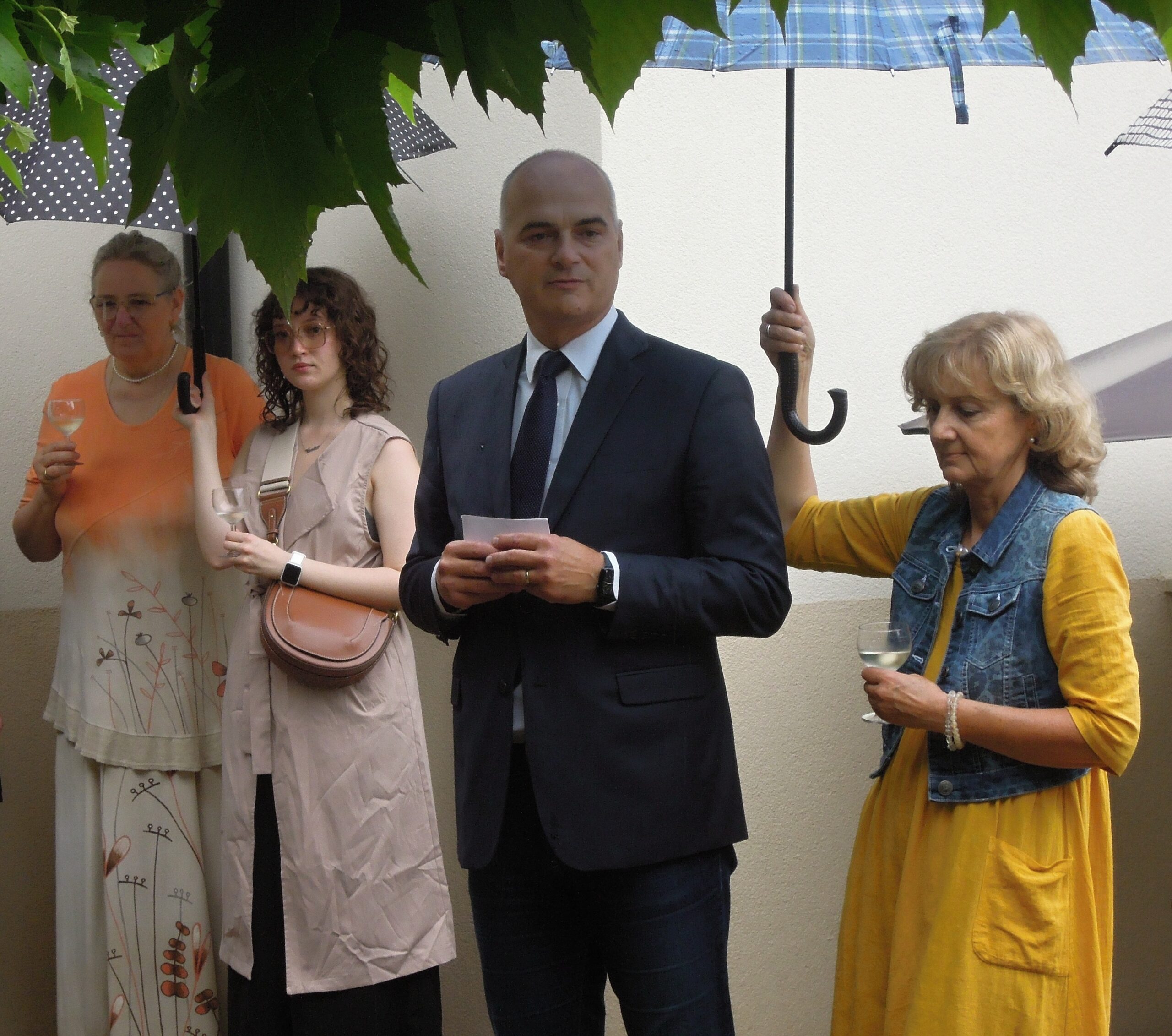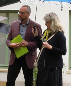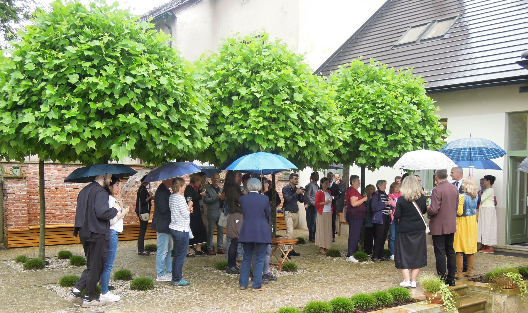 Na zahradě se za mírného deště odehrálo setkání s veřejností a slavnostní otevření budovy. Krátkými proslovy uvítal asi padesát účastníků předseda správní rady Nadace Hnutí Grálu Jan Zubatý a vedoucí hořického kruhu Grálu Jiří Mráz. Připomněli, že budova byla zakoupena už roku 2015 a že na její rekonstrukci se ve velké míře podíleli její budoucí uživatelé. Mezi účastníky byla i bývalá majitelka domu a stejně jako ostatní návštěvníci ocenila v soukromých rozhovorech nejen vkusné a moderní zařízení, ale hlavně citlivou rekonstrukci budovy z roku 1914, která ve velké míře zachovala architektu a design (zábradlí, dlažba, okno s barevnými skly nad vchodem apod.).