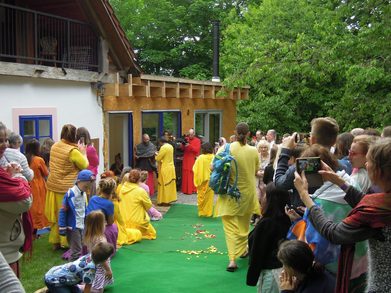 Ovšem asi 200 účastníků setkání s gurudžím, jak je Vinšvanánda svými oddanými láskyplně nazýván, by se nevešlo ani do zcela dokončeného chrámu. Proto byly v prostoru před chrámem postaveny stany a připraveno jednoduché sezení. V hlavním stanu tohoto „městečka“ bylo možné sledovat videoprojekci toho, co se v chrámu děje. Další stany poskytovaly drobné občerstvení, místo pro zavazadla, možnost převléknutí nebo dětský koutek. Organizace musela být náročná, ale zdálo se, že všechno výborně klape.