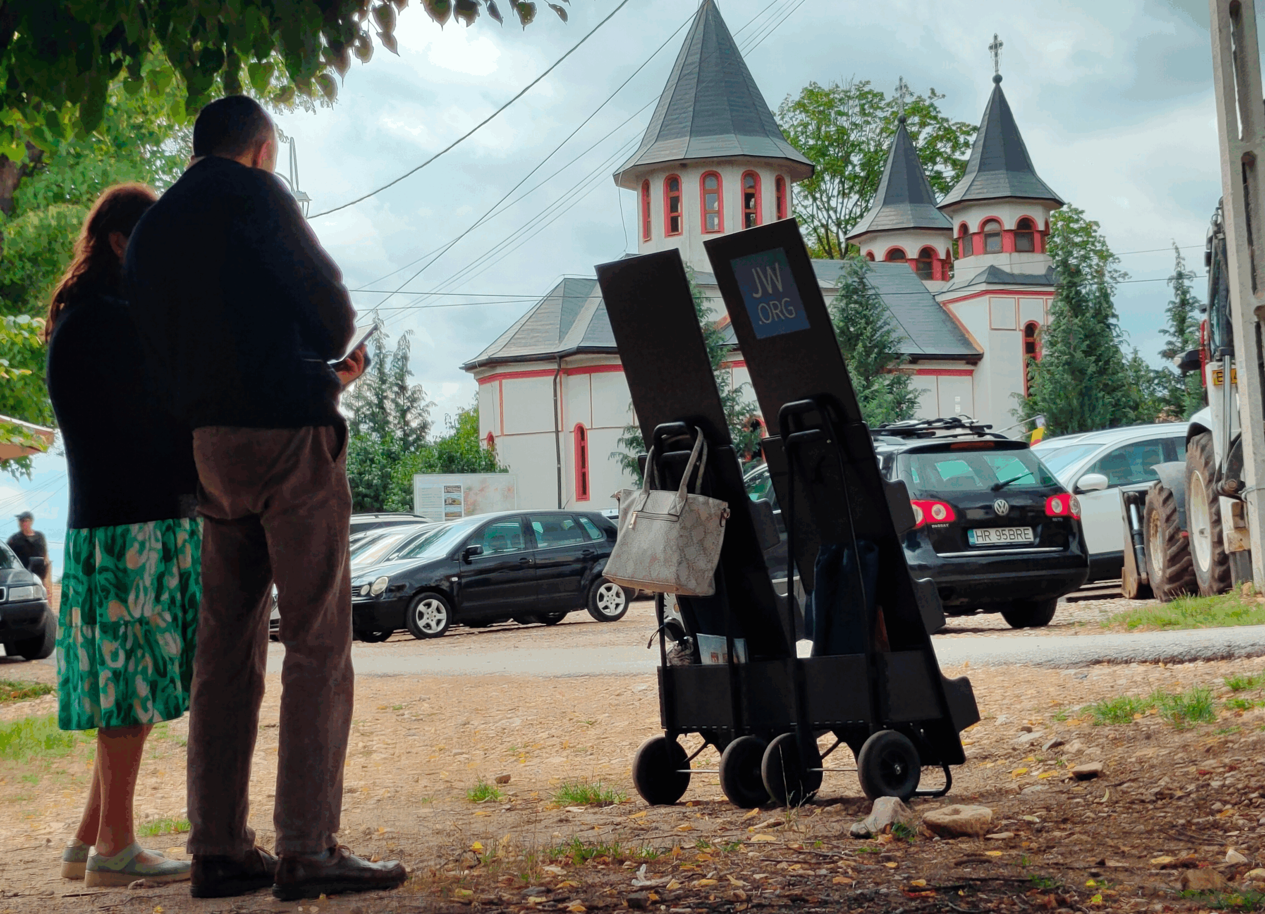Obec je zajímavá i svým náboženským složením. Více než 70 % obyvatel se hlásí k Unitářské církvi Transylvánie (maď. Erdélyi Unitárius Egyház), přibližně 5 % k reformované církvi a o něco méně k církvi římskokatolické, kterou uznává většina rumunských Maďarů. Rumunská menšina v obci většinou patří k pravoslavné církvi (cca 13 %). Tato náboženská rozmanitost je doplněna i přítomností svědků Jehovových, kteří tvoří podle rumunské Wikipedie necelá 3 % obyvatel – což je relativně vysoký podíl ve srovnání s celkovou populací svědků Jehovových v Rumunsku (0,26 %). Fotografie níže zachycuje misijní činnost této náboženské organizace, zaměřenou především na početné návštěvníky obce.
