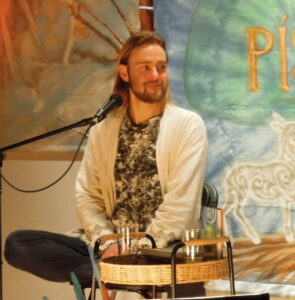 Sebastian Prax (*1996) se představuje jako „cestovatel, spisovatel, muzikant a přírodovědec“, ale k této charakteristice je potřeba doplnit, že je možná nejvýraznější postavou mladé generace současného hnutí post-New Age nebo též nenáboženské (nebo alternativní nebo ezoterické) spirituality. Píše knihy (jednu jsme recenzovali zde), pořádá společná zpívání, buduje komunitu v Rabouni a je například i duší zmíněného festivalu v Hořicích. Jeho důležité místo v síti stoupenců této spirituality bylo patrné i na oslavě zpěvníku: v naplněném sále pražského alternativního prostoru Avati byly aspoň dvě stovky převážně mladých lidí a na pódiu vystoupily známé osobnosti tohoto segmentu současného českého náboženského života.