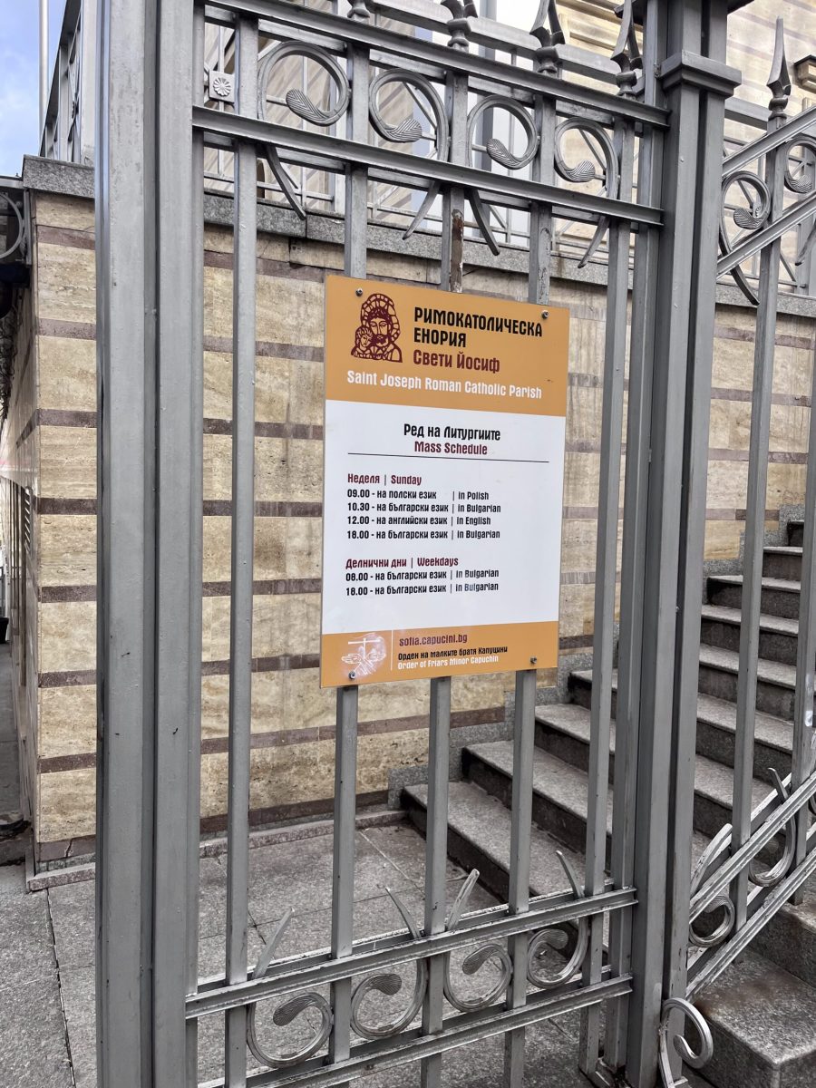 Zásadním rysem byla jazyková pluralita. Nedělní i sváteční bohoslužby byly ve Svatém Josefovi rozděleny podle jazyků – bulharsky, polsky a anglicky. Katolická komunita v Sofii totiž není pouze lokální, ale výrazně transnacionální. Polština ukazovala na stabilní diasporu a angličtina na mobilní, mezinárodní prostředí. Tato farnost funguje jako náboženské centrum a prostor pro setkávání různých kulturních a jazykových skupin. (foto – rozpis)