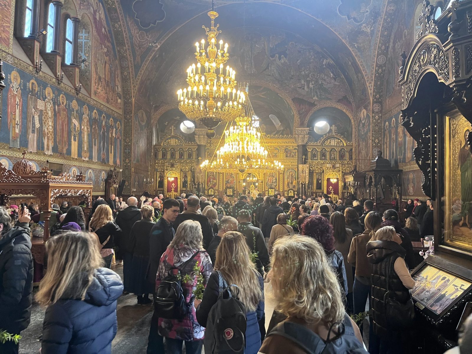 Druhým navštíveným místem byla Bulharská řeckokatolická katedrála Zesnutí Bohorodice, která reprezentovala odlišnou podobu katolicismu – byzantský obřad. Na rozdíl od latinského důrazu na dramatickou strukturu velikonočního tridua zde převažoval plynulý liturgický rytmus. Zásadní rozdíl spočíval v kalendáři: zatímco v katedrále sv. Josefa již probíhaly velikonoční oslavy, řeckokatolická komunita se nacházela v jiné fázi – v přípravě na Květnou neděli a začátek Svatého týdne, v souladu s dominantním pravoslavím.